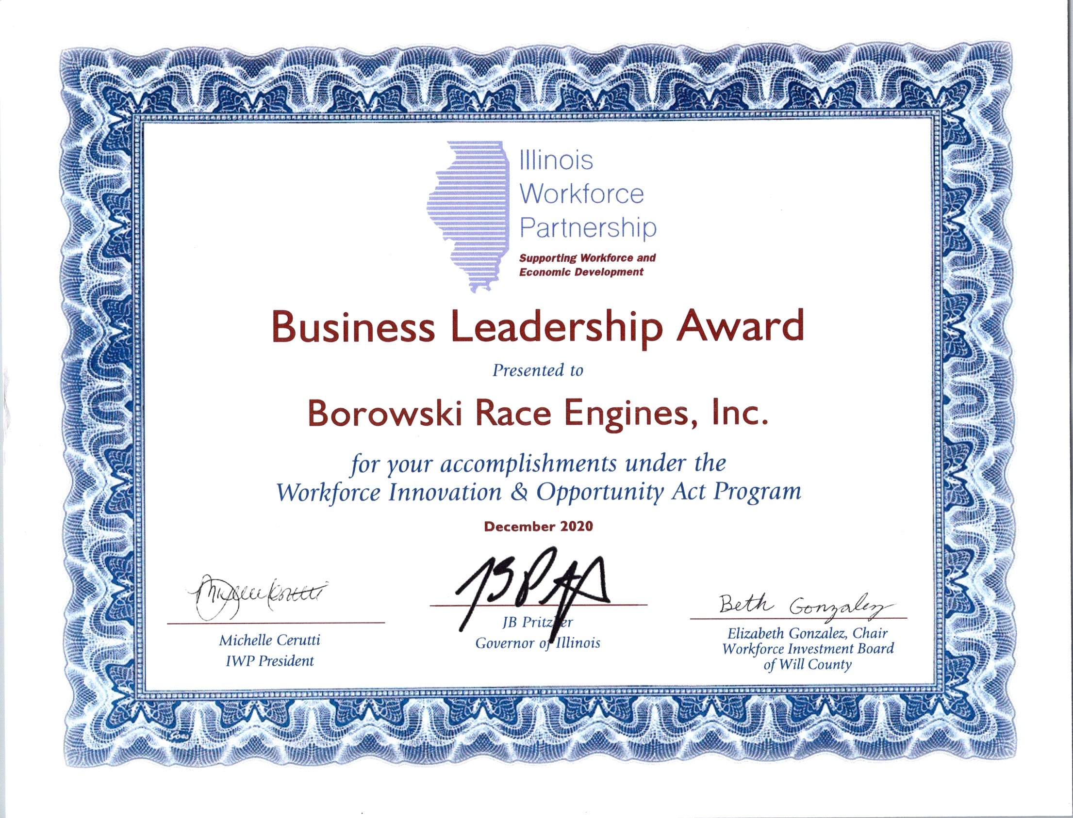 Last but not least, the skill of the people who finish-machine and assemble your short block is just as important as the parts, machining and design. We've got some of the best around and we have spent a lot of time and money on their training. This investment in our people was recognized by the State of Illinois with their Business Leadership award. We have also been recognized by Engine Builder Magazine as Race Engine Builder of the Year.