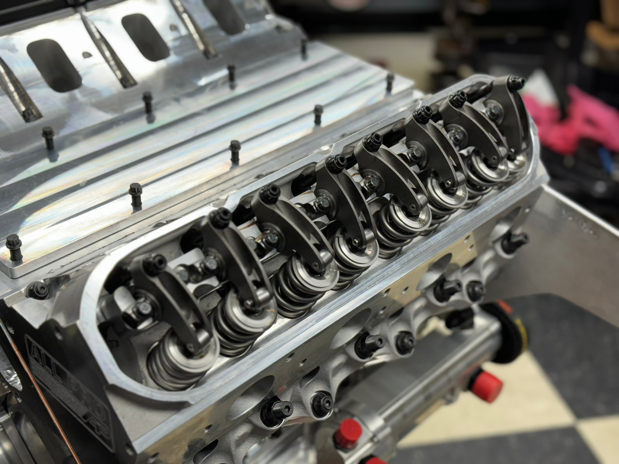 On top are our BRE-machined All Pro cylinder heads filled with the parts you need to push this engine to the limit. We start with raw castings so the ports, runners and combustion chamber are all custom. While we prefer LS7 ports, we can machine LS3 ports into the heads if that's what you need for your existing intake manifold. The port work does not change the valve angle which will remain at 12 degrees on the LS3 variant. The All Pro's are assembled with Inconel exhaust valves and Severe Duty Manley intake valves. The Manley NexTex spring kit has a coil bind rating of 0.960" allowing high valve lift.