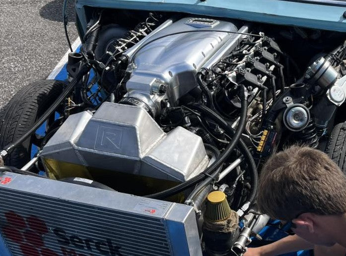 This is the long block that powered Rob Carter (Bereyt Racing) to 1st Place Street Eliminator finishes for both the FIA European and his home UK Nationals. He was running with conventional (Cometic MLX) head gaskets at 35 psi boost (max rating). Check out the video for more details.
